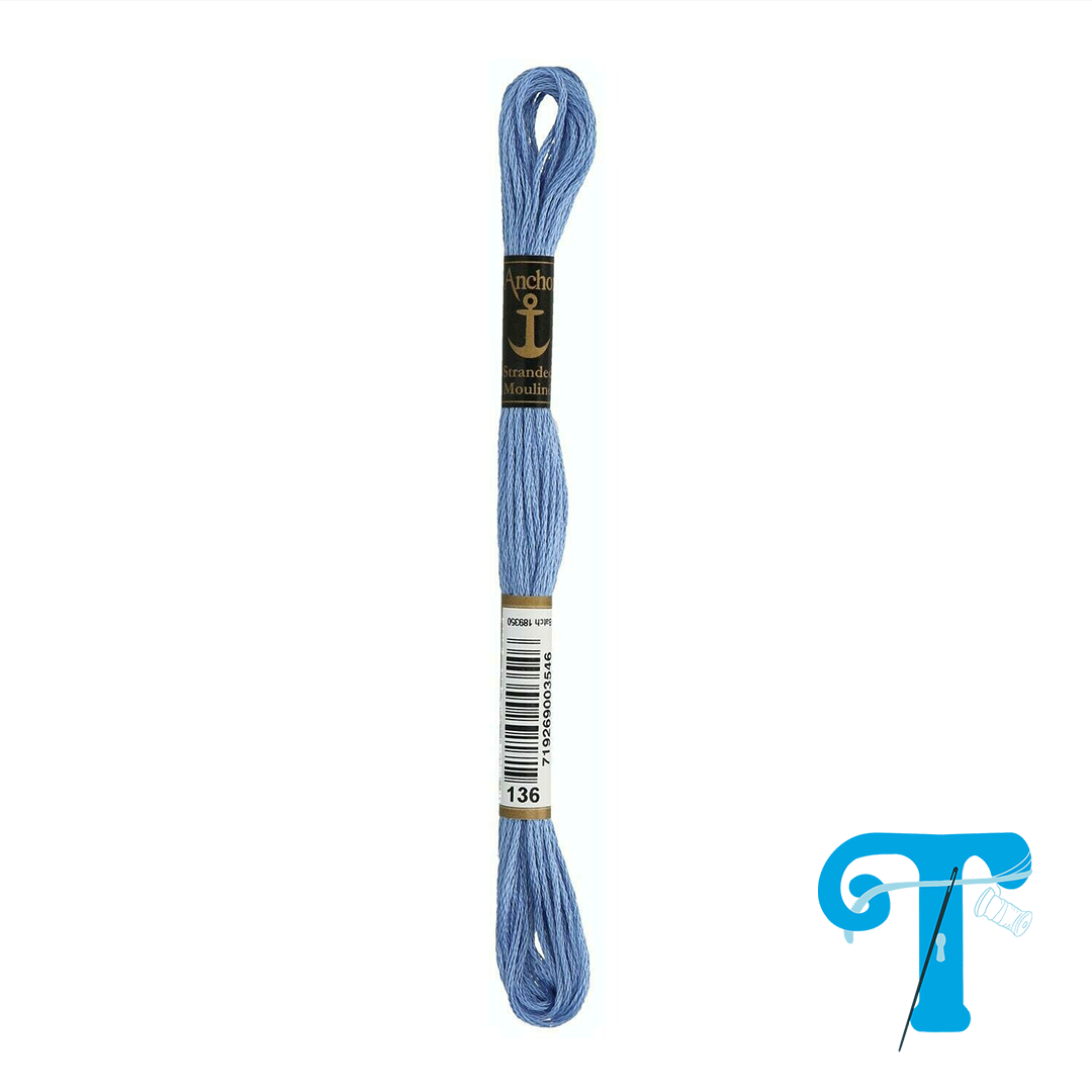 Anchor Stranded Cotton é um fio de bordar superior, 100% algodão egípcio extra longo, de 6 fios. É duplamente mercerizado resultando num brilho, suavidade única e um reflexo de luz intenso.