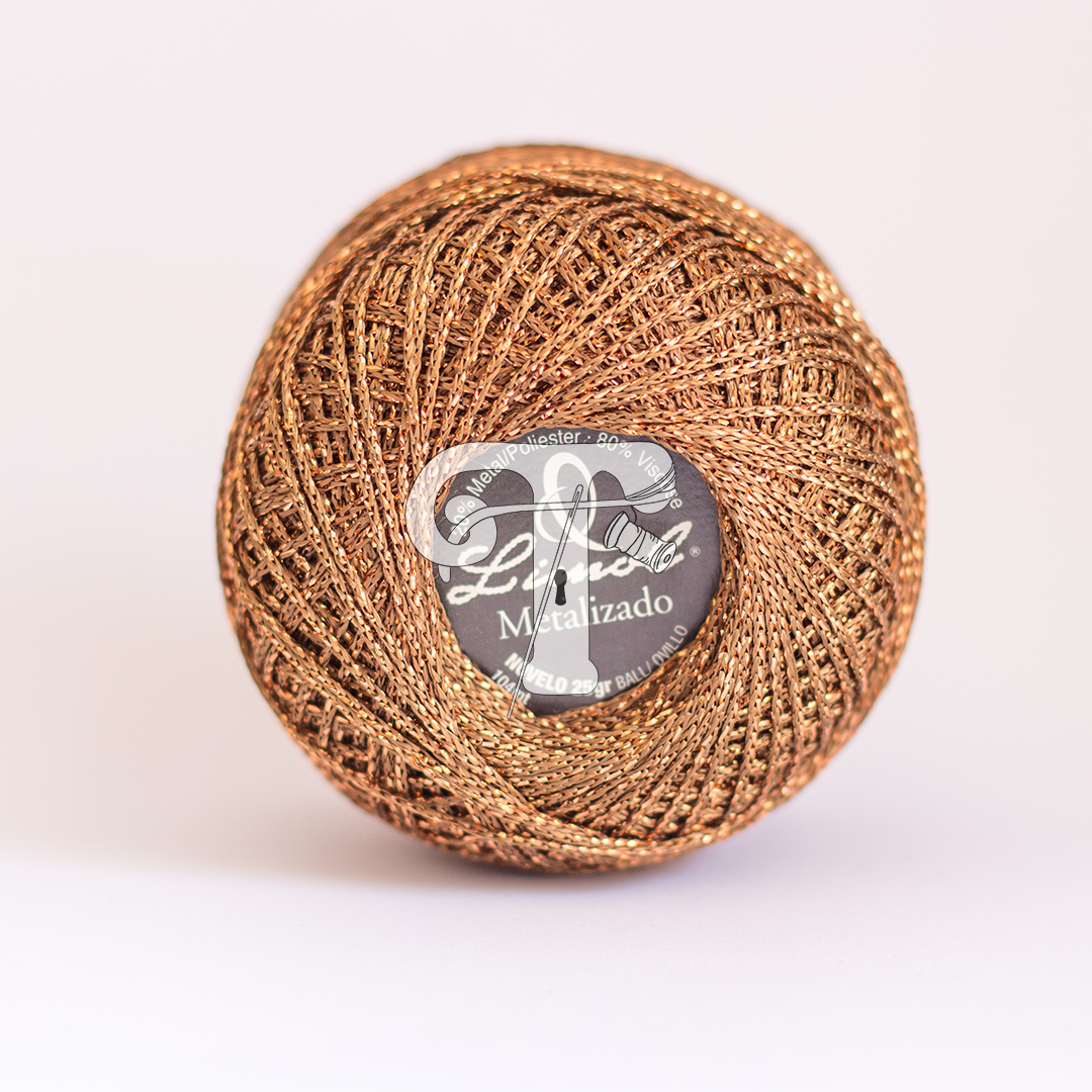 Fio de crochê metalizado e brilhante, ideal para projetos de Natal e outros trabalhos semelhantes devido às suas características.
