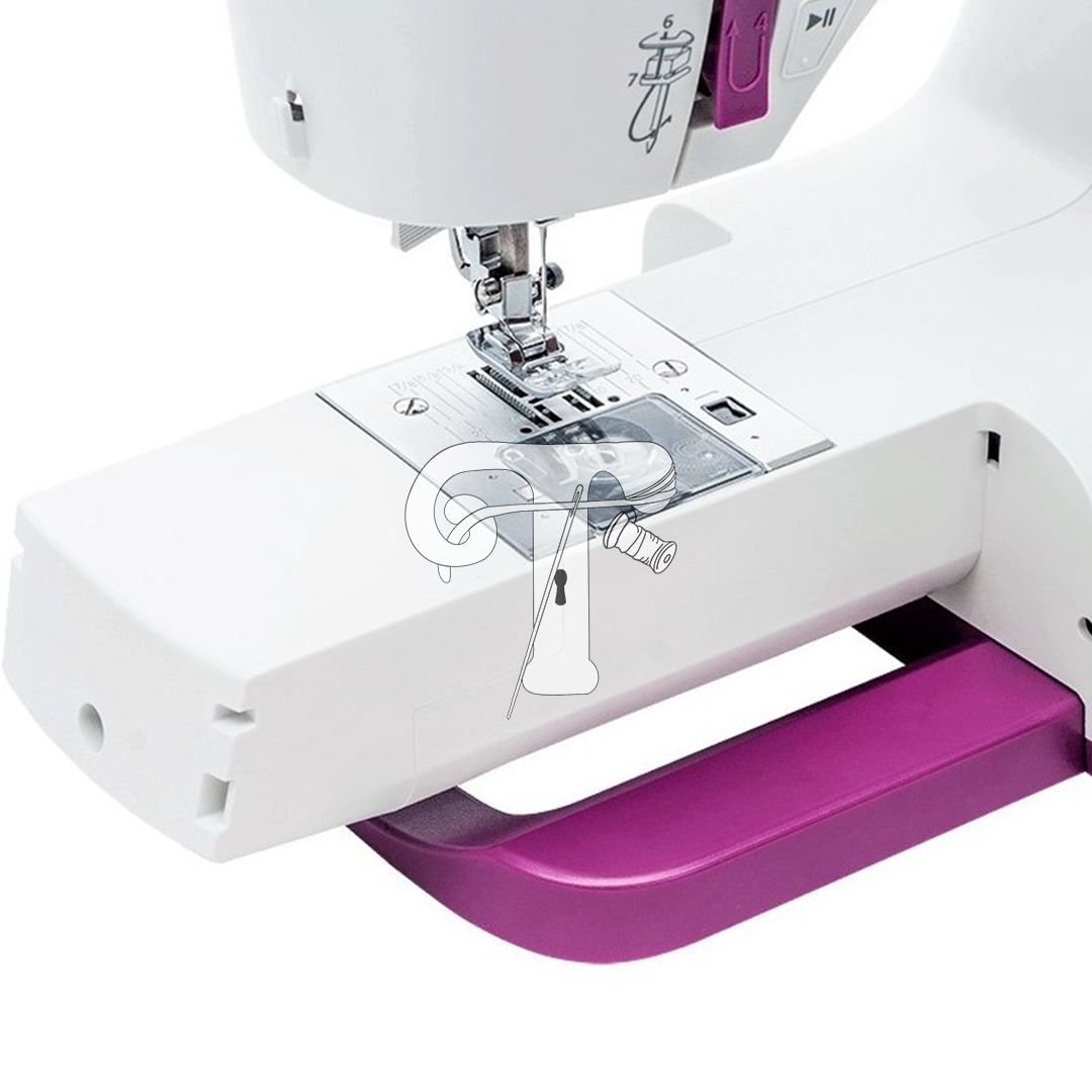 Características 439 pontos embutidos Sistema de bobina drop-in horizontal Cortador de linha inferior automático Pé de caseado eletrônico Display LCD extra grande com luz de fundo 3 conjuntos de pontos de número alfa com 2 bancos de função de memória 13 estilos de casa de botão Controle de velocidade com botão Iniciar / Parar Mesa de extensão de costura de agulha dupla para passador de agulha automático