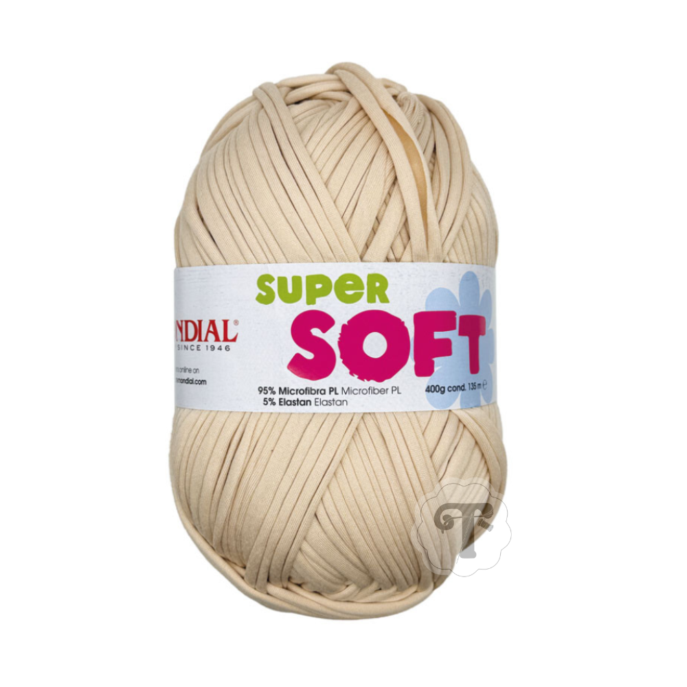Super Soft é uma fita de Lycra macia e resistente, extremamente fácil de trabalhar. Perfeita para fazer malas em croché, proporciona uma experiência de criação fluida e agradável. Resulta melhor com agulhas de croché entre os tamanhos 10 e 12. Disponível numa vasta gama de cores para se adaptar a todos os estilos e estações, mantém a sua forma sem acrescentar peso.